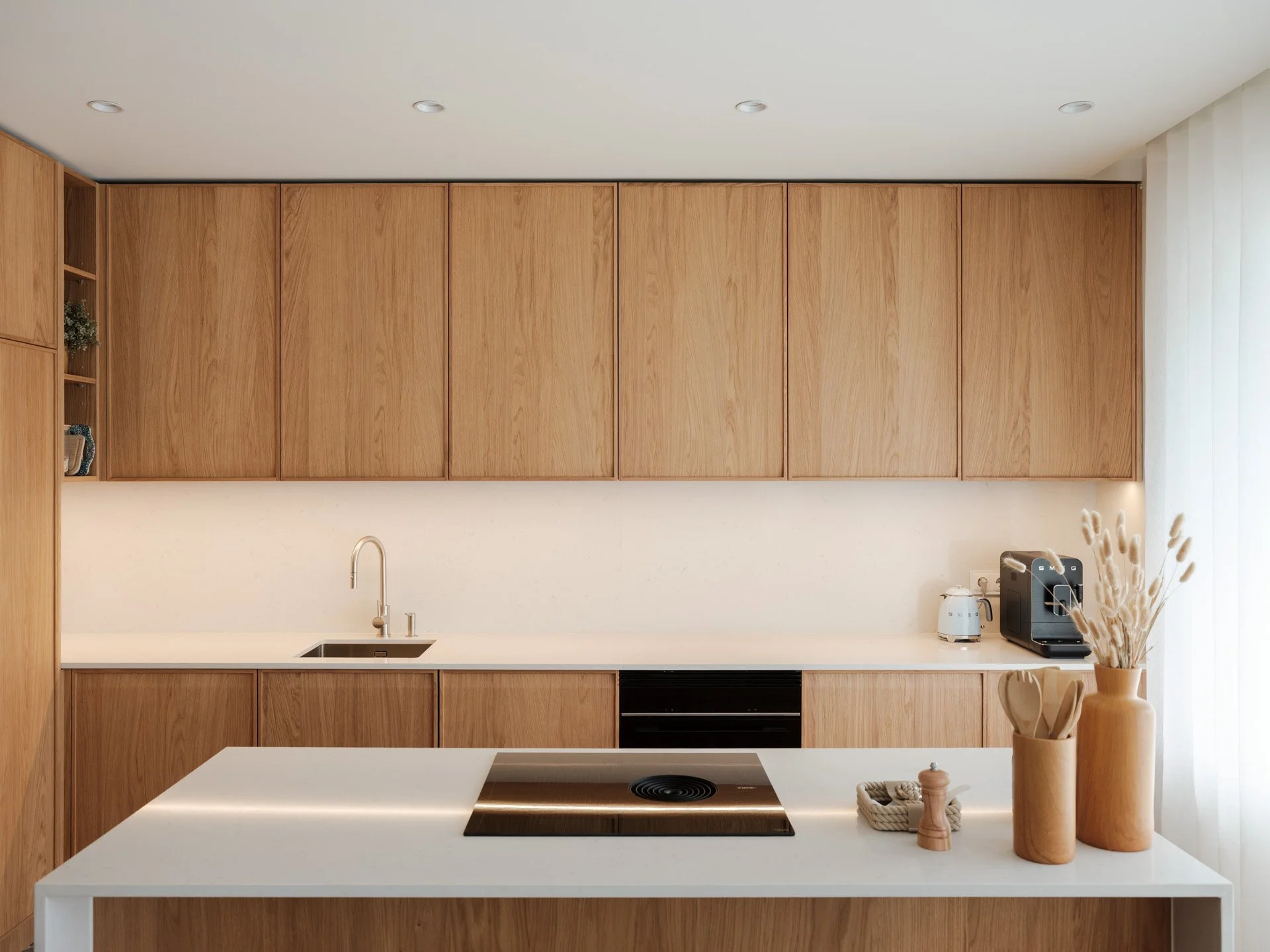 The time spent developing the project and understanding the client's needs allowed us to achieve a clear solution in the organization of the space, preserving the existing structure and openings, and giving the property a completely renewed identity. The entrance, previously closed and rather small, has given way to a continuous space that connects the living and cooking areas, enhancing the large window overlooking the sea.